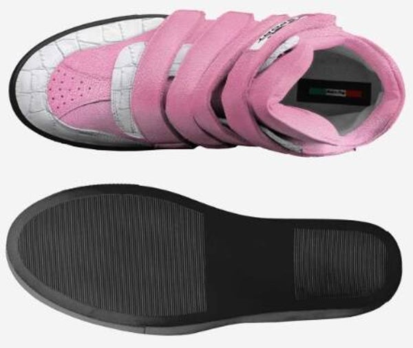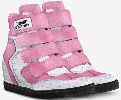 The “Blush Force Elevate” is a dynamic high-top sneaker wedge designed for those who embrace bold femininity with an edge. Wrapped in a striking white crocodile texture and accented with vibrant blush pink overlays and Velcro straps, this design fuses comfort with commanding street style. Featuring a concealed wedge heel and secure strap closures, it’s perfect for elevated movement—whether in fashion, fitness, or fearless expression.